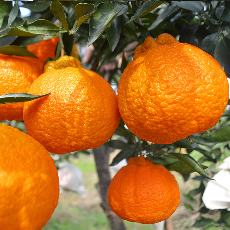 果實(shí),幾乎全是單花,但也有總狀花?;ǖ拇笮”惹逡姾团龈檀?。有花粉,但花粉量少,且多數(shù)是畸形花。無核果率很高,即使有核,種子數(shù)也極少。單性結(jié)果強(qiáng)。單果重200-280g,是寬皮柑桔中的大果形。果形倒卵形或扁球形,果形指數(shù)1.00-2.00。