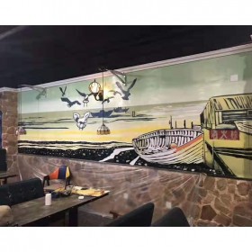 4、商業(yè)區(qū)域裝飾類主題餐廳壁畫、特色包房壁畫、廣場主題壁畫、教堂天頂畫、賓館酒店、飯店、酒吧、餐廳、包間、KTV、會所、洗浴中心等環(huán)境手繪; 企業(yè)前臺背景墻、特色會議室、辦公區(qū)等手繪;