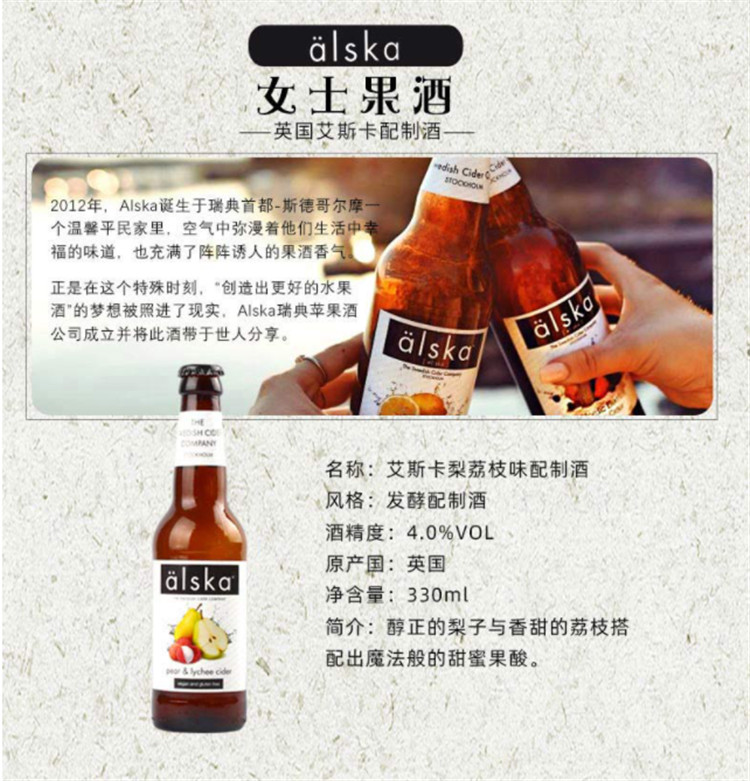 英國(guó)進(jìn)口艾斯卡女士西打酒 梨荔枝味
