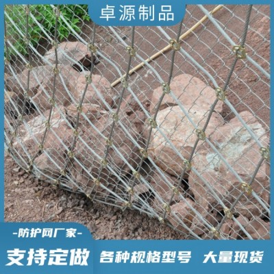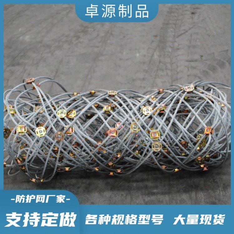 邊坡防護(hù)網(wǎng)有主動(dòng)防護(hù)與被動(dòng)防護(hù),主動(dòng)防護(hù)系統(tǒng)是以鋼絲繩網(wǎng)為主的各類柔性網(wǎng)覆蓋包裹在所需防護(hù)斜坡或巖石上,以限制坡面巖石土體的風(fēng)化剝落或破壞以及為巖崩塌(加固作用),或?qū)⒙涫刂朴谝欢ǚ秶鷥?nèi)運(yùn)動(dòng)(圍護(hù)作用)。被動(dòng)防護(hù)是由鋼絲繩網(wǎng)、環(huán)形網(wǎng)、(需攔截小塊落石時(shí)附加一層鐵絲格柵)、固定系統(tǒng)(錨桿、拉錨繩、基座和支撐繩)減壓環(huán)和鋼柱四個(gè)主要部分構(gòu)成。鋼柱和鋼絲繩網(wǎng)連接組合構(gòu)成一個(gè)整體,對所防護(hù)的區(qū)域形成面防護(hù),從而阻止崩塌巖石土體的下墜,起到邊坡防護(hù)作用。