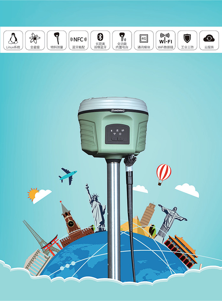 三鼎 T 6 6 pro高精度北斗全星座工程 R T K/GPS測(cè)量?jī)x小型機(jī)工程測(cè)繪儀器