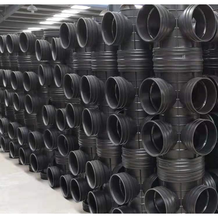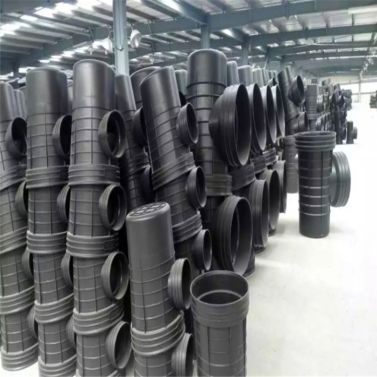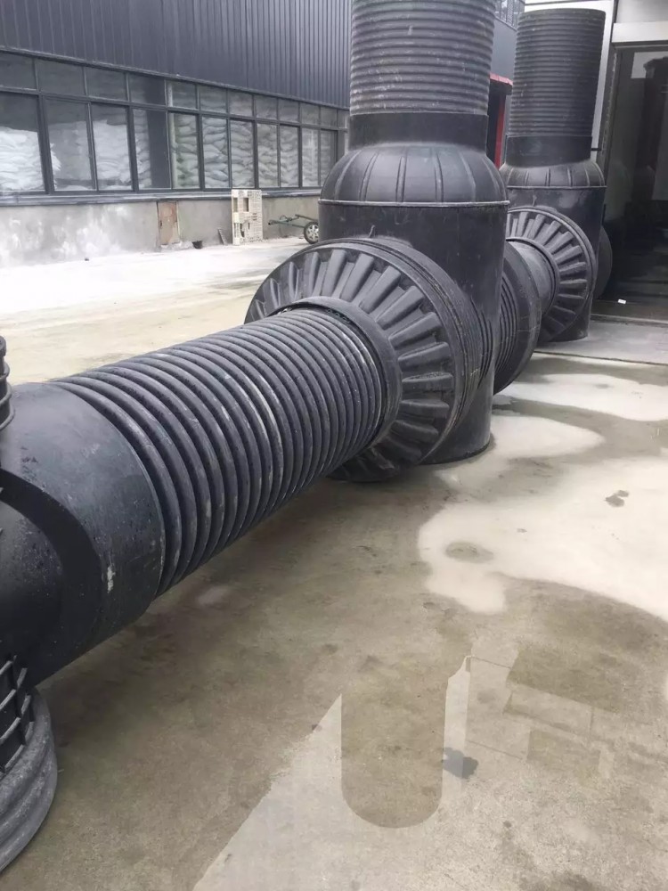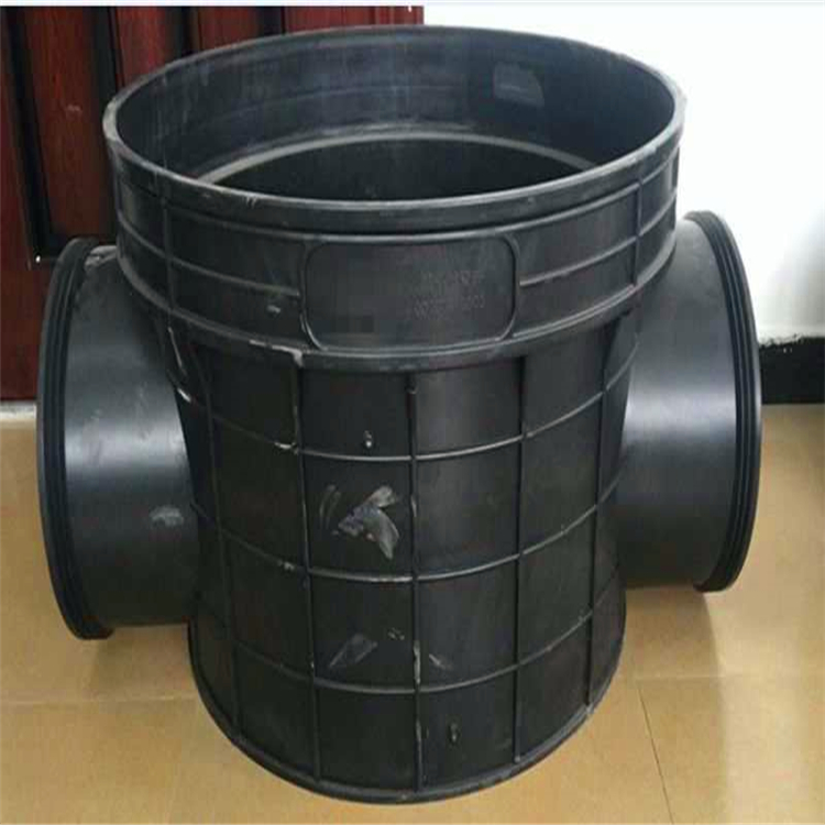 塑料檢查井的井座部分大多采用的是一次性注塑成型,以異徑接頭、變角接頭和橡膠密封圈等配件來達(dá)到改變管徑及角度的連接。塑料檢查井配套開發(fā)了井蓋、井筒和相關(guān)配件,路面載荷通過井蓋、井座作用于檢查井周圍,避免了路面載荷對檢查井的破壞。