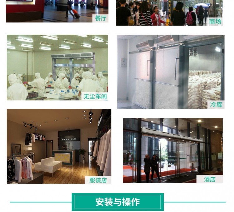 廣泛應(yīng)用于超市、商場、醫(yī)院、冷庫、車站、機(jī)場、餐廳、工廠、休閑環(huán)境等出入口以及一切按照有空調(diào)的場所