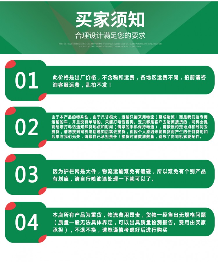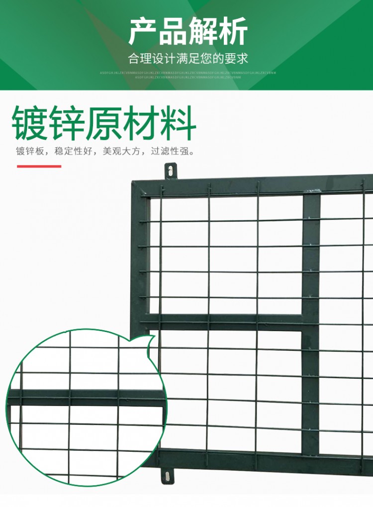 網(wǎng)片尺寸:標(biāo)準(zhǔn)規(guī)格1800×2500mm。非標(biāo)準(zhǔn)高度限于2500mm,長度限于3000mm 也可定做。