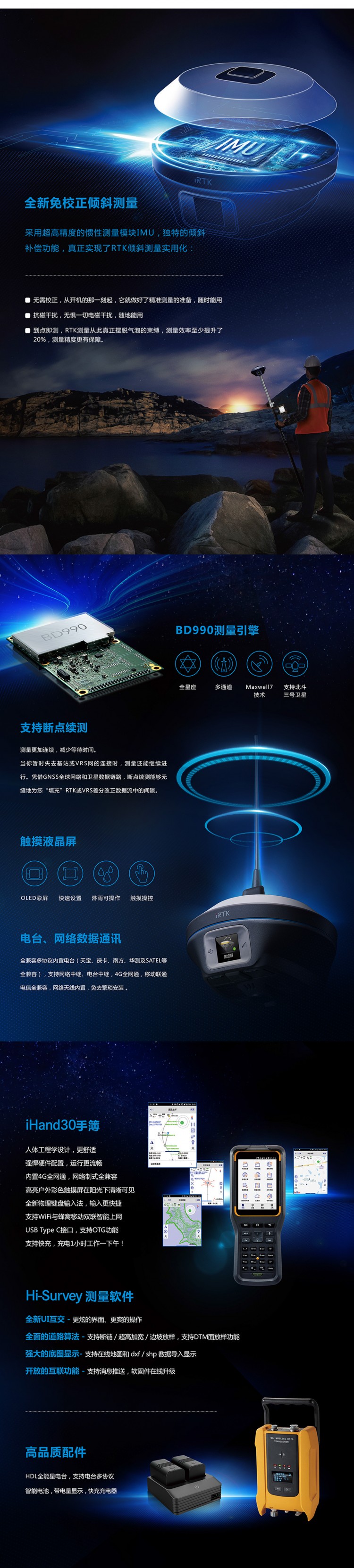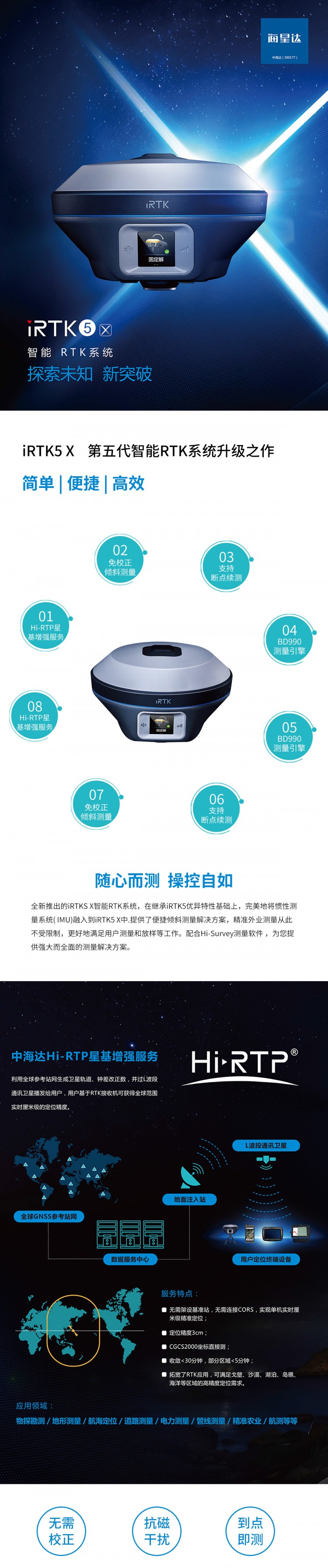 全新推出的iRTKS X智能RTK系統(tǒng),在繼承iRTK5優(yōu)異特性基礎(chǔ)上,完美地將慣性測量系統(tǒng)( IMU)融入到iRTK5 X中提供了便捷傾斜測量解決方案,精準(zhǔn)外業(yè)測量從此不受限制,更好地滿足用戶測量和放樣等工作。配合Hi Survey測量軟件,為您提供強測量解決方案。