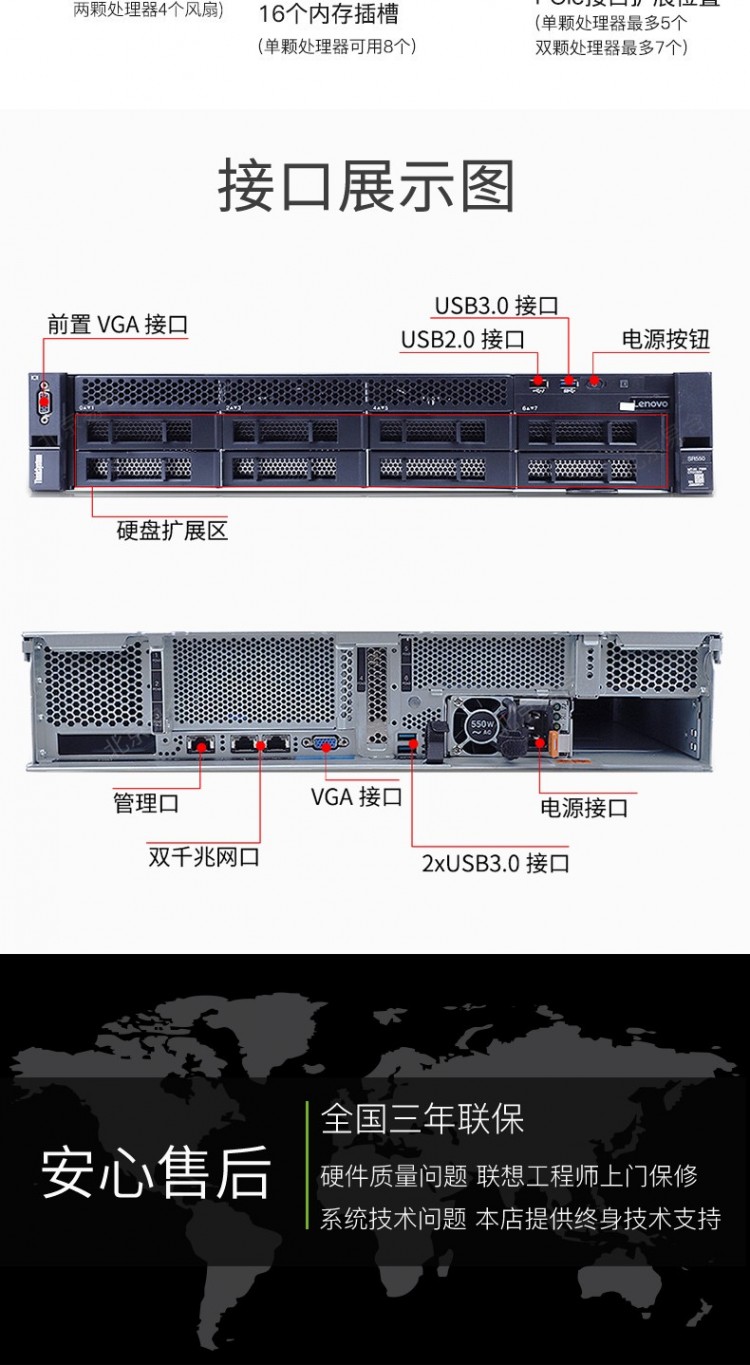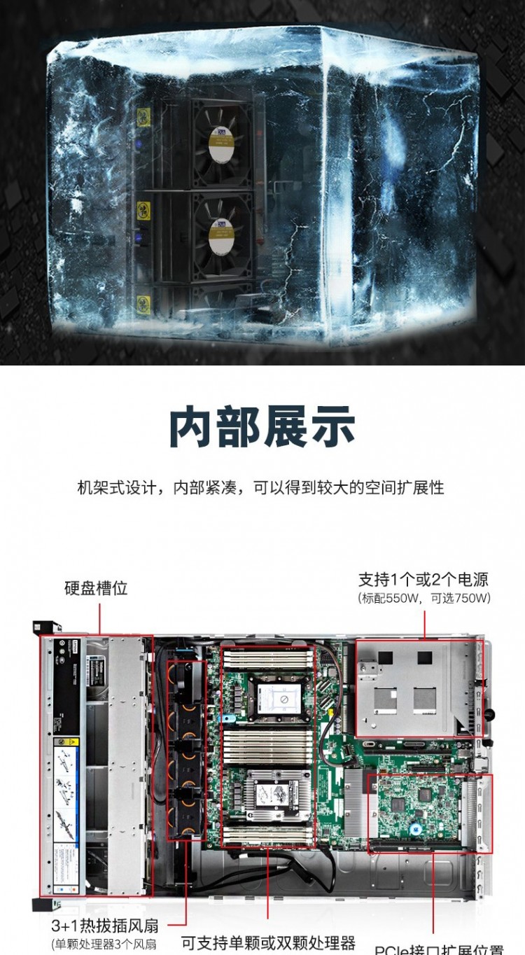【原廠工程師推薦配置】:Lenovo ThinkSystem SR550,2U機(jī)架式服務(wù)器,1*英特爾 至強(qiáng) 銀牌 4110 處理器 (8C, 2.10 GHz),可支持2顆CPU,1*16GB TruDDR4 2666 MHz (1Rx4 1.2V) RDIMM,支持12個(gè)DDR4內(nèi)存插槽,1*3.5" 2TB 7.2K SAS 12Gbps 熱插拔硬盤 , 標(biāo)配支持8個(gè)3.5"硬盤背板插槽,標(biāo)配RAID 530-8i  PCIe 12Gbps 陣列卡(支持8個(gè)硬盤)支持RAID0/1/10/5/50,標(biāo)配2個(gè)集成1GbE RJ-45網(wǎng)口(LOM卡)1個(gè)管理網(wǎng)絡(luò)端口,支持6個(gè)PCIe 3.0插槽,標(biāo)配1個(gè)550W白金級(jí)熱插拔電源模塊,支持2個(gè),前置1個(gè)USB2.0(XClarity管理接口),1個(gè)USB3.0接口,光通路診斷LED報(bào)警燈,2U機(jī)架,3年有限保修&基礎(chǔ)安裝