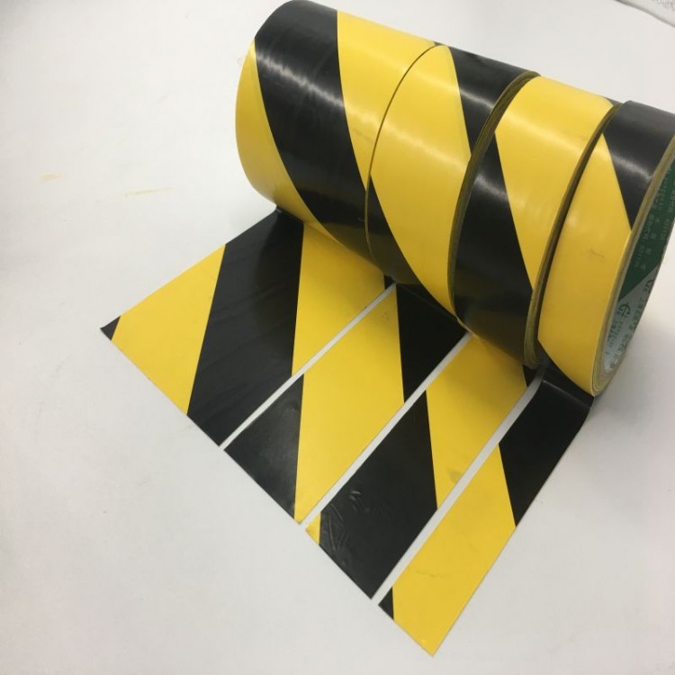 暖輝警示膠帶黃黑4.8寬彩色地面地板膠帶警戒隔離斑馬線 黑黃膠帶PVC生產廠家