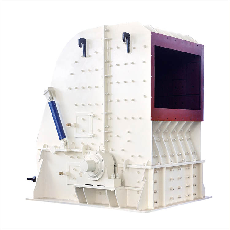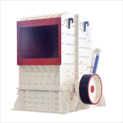塊狀礦石由進(jìn)料斗落入上破碎腔內(nèi)上甩料盤上,借助甩料盤的離心力將物料拋向筒體的內(nèi)壁,與安裝在內(nèi)壁上的反擊板猛烈碰撞,同時(shí)物料互相撞擊,使之破碎或產(chǎn)生大量發(fā)絲裂紋,接著物料進(jìn)入錐形轉(zhuǎn)子腔后,在錐形空間呈螺旋狀下落,經(jīng)沖壓、擠壓,使已有裂紋的礦石進(jìn)一步被破碎。由于錐形轉(zhuǎn)子與襯板間的斜度,促使較小的物料向下遷移,達(dá)到由大到小自動(dòng)實(shí)現(xiàn)分級(jí)破碎。物料在錐形轉(zhuǎn)子腔內(nèi)受錘頭的打擊,高速運(yùn)行塊料再次與反擊板碰撞、物料流相互碰撞使物料經(jīng)打擊、撞擊、剪切、擠壓面粉碎,從而提高破碎效率。