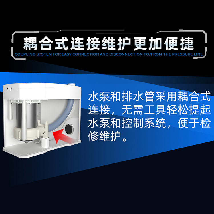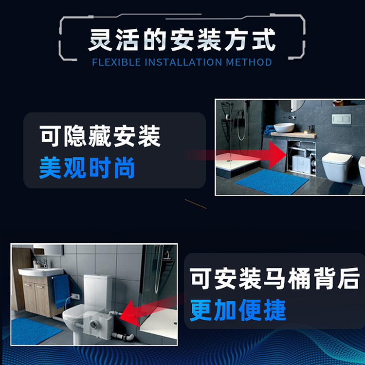 GERIOS側(cè)排式衛(wèi)生間污水提升器連接的排水單元有限,只能同時連接一個馬桶、洗手盆、淋浴間或坐浴盆。既可以與壁掛馬桶配套側(cè)面隱蔽式安裝也可以直接連接落地式馬桶。