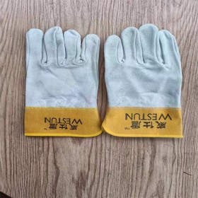 焊工手套是為防御焊接時(shí)的高溫、熔融金屬、火花燒(灼)手的個(gè)人防護(hù)用品。一般采用牛、豬絨面革制成五指形,三指形和二指形手套。并配有18cm長(zhǎng)的帆布或皮革制的袖筒。焊工手套產(chǎn)品的質(zhì)量應(yīng)符合LD34.3-92標(biāo)準(zhǔn)的規(guī)定。