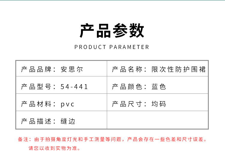 ansell/安思爾微護(hù)佳 54-441 防護(hù)圍裙耐油防化靈活耐磨損耐穿刺性