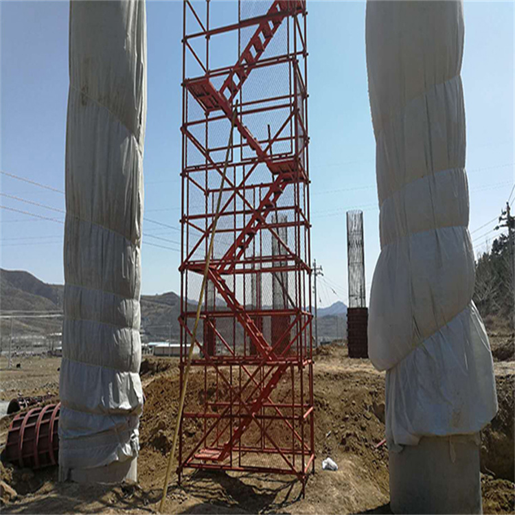 9.安全爬梯每隔1.5米安放一張帶踏步Z字形樓梯,每隔4-5米需安置扣墻件,*大搭設(shè)高度為100米。