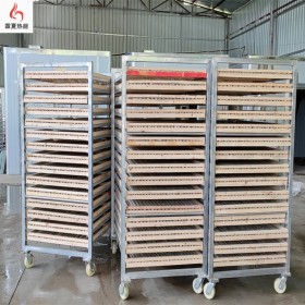 中期1: 8~16小時(shí),用55℃烘烤,烘干模式,定時(shí)排濕(每排30分鐘,停5分鐘), 烘房相對(duì)濕度保持在50%,保持竹筍的顏色為金黃色;