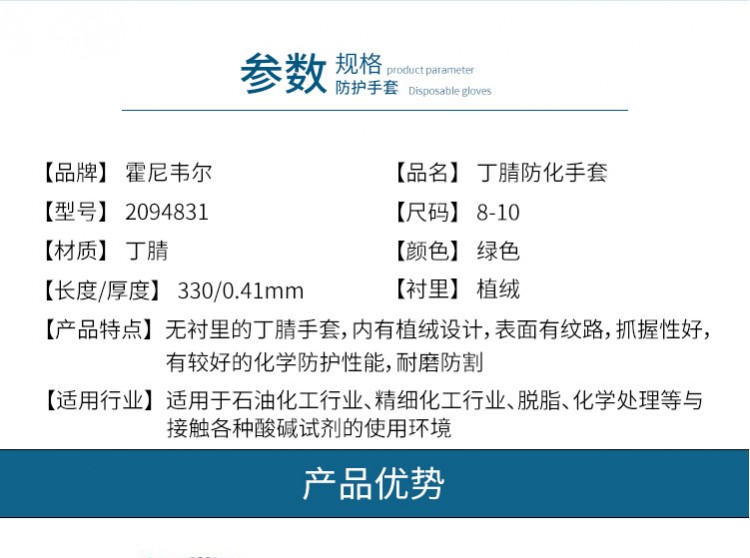 Honeywell/霍尼韋爾 2094831 防滑耐油耐磨手套 丁腈橡膠洗碗防化手套 石油化工化學(xué)處理等行業(yè)適用
