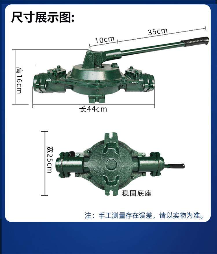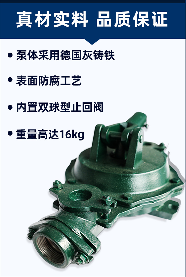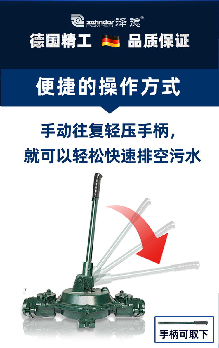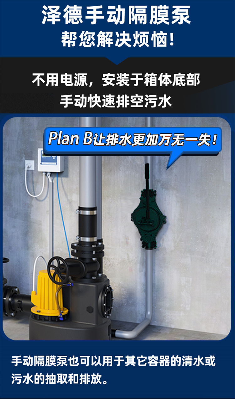 重點用于Kompaktboy單泵和雙泵的緊急排水,主要解決停電時候用水單元可以正常使用,檢修的時候可以將箱體內(nèi)的水排空!所以每一臺澤德的泵站都可以配一臺手動隔膜泵!