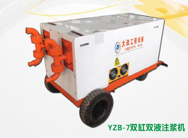 液壓注漿機(jī)由電動(dòng)機(jī)、齒輪油泵、溢流閥、液壓換向閥塊、油缸、工作缸、混合器以及油箱、散熱器、油濾器、進(jìn)排閥和電控箱等部件組成。