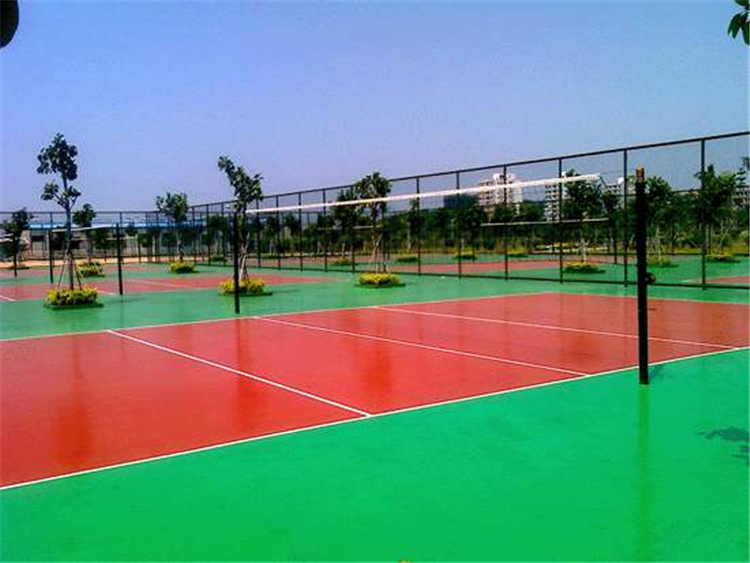 優(yōu)越耐候、耐磨性:不會因紫外線、臭氧、雨水及高低溫氣候等環(huán)境改變而發(fā)生褪色、粉化、發(fā)硬、發(fā)軟等現(xiàn)象,并能長期保持其鮮艷的色彩、堅韌、密實、長期保持球場光活如新,不易被鞋底或其它硬物刮花,滿足長期高使用頻率之需要。