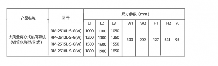 大風(fēng)量離心式熱風(fēng)幕機(jī)(鋼管水熱型/臥式)/RM─2518L─S─G(W) 風(fēng)幕機(jī)價(jià)格