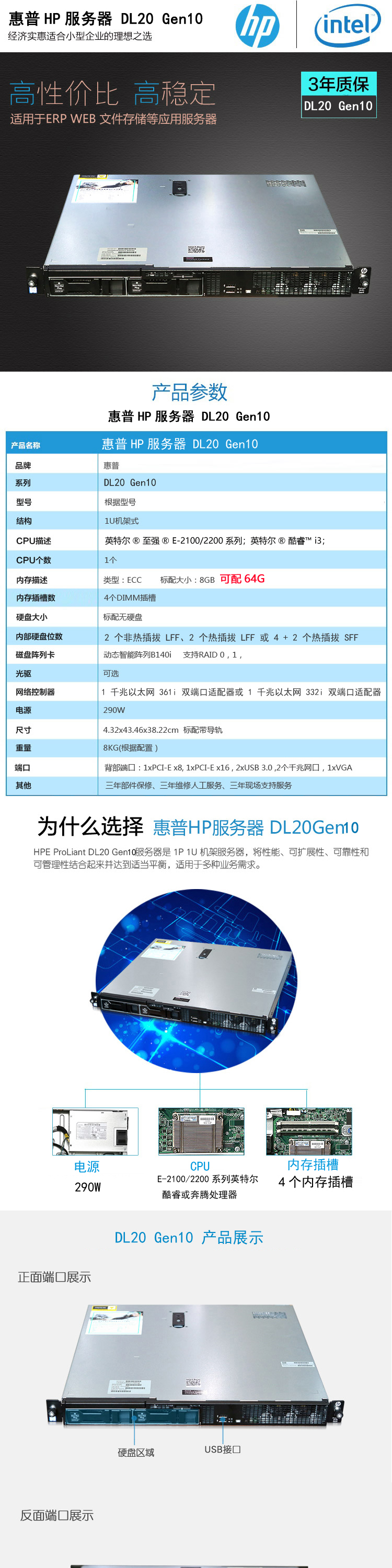 塔式 HPE ProLiant ML350 Gen10 8SFF 熱插拔型號(hào):標(biāo)配一個(gè)Intel Xeon 4110(8核 2.1GHz,85W),支持2個(gè)處理器;標(biāo)16GB(1x16GB) DDR4 DDR4-2600內(nèi)存,配置24個(gè)內(nèi)存插槽,支持3TB;集成千兆4口以太網(wǎng)適配器,其中一個(gè)可以共享為iLO管理端口; 主板集成 iLO Management Engine (iLO5)遠(yuǎn)程管理芯片;標(biāo)配1個(gè)HPE P408i-a智能HBA陣列控制器 2GB緩存,含智能存儲(chǔ)電池;支持RAID 0/1/5/6/10/50/60/1 ADM/10 ADM;;標(biāo)配無(wú)硬盤,配置8個(gè) SFF 2.5英寸熱插拔硬盤槽位,支持24個(gè);可選9.5mm slim光驅(qū),需配置光驅(qū)托架;4個(gè)PCIe3.0插槽;1個(gè)非熱插拔,非冗余系統(tǒng)風(fēng)扇,可選增加1個(gè)非熱插拔,非冗余PCIe風(fēng)扇;6個(gè)USB 端口,1個(gè)內(nèi)置 Micro SD插槽;標(biāo)配1個(gè)800W多路輸出電源,不冗余;標(biāo)配無(wú)鍵盤鼠標(biāo);塔式(4U);3年3-3-3 NBD