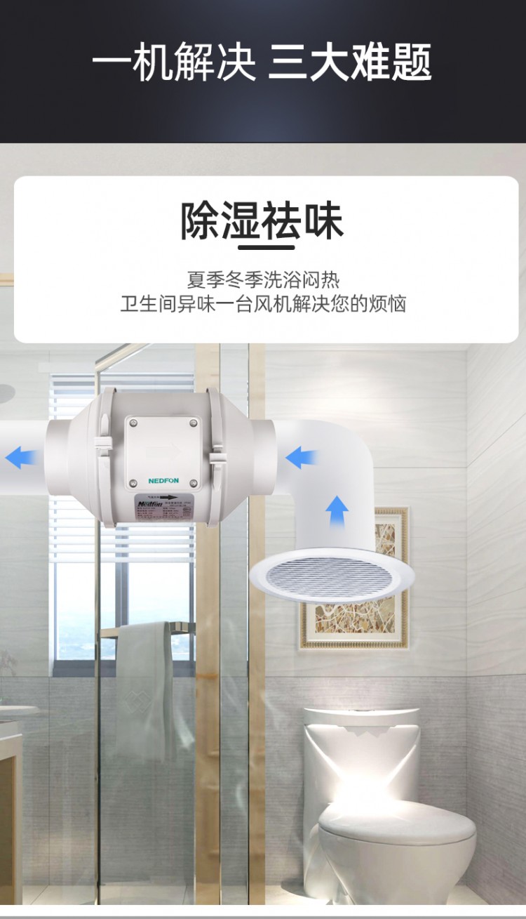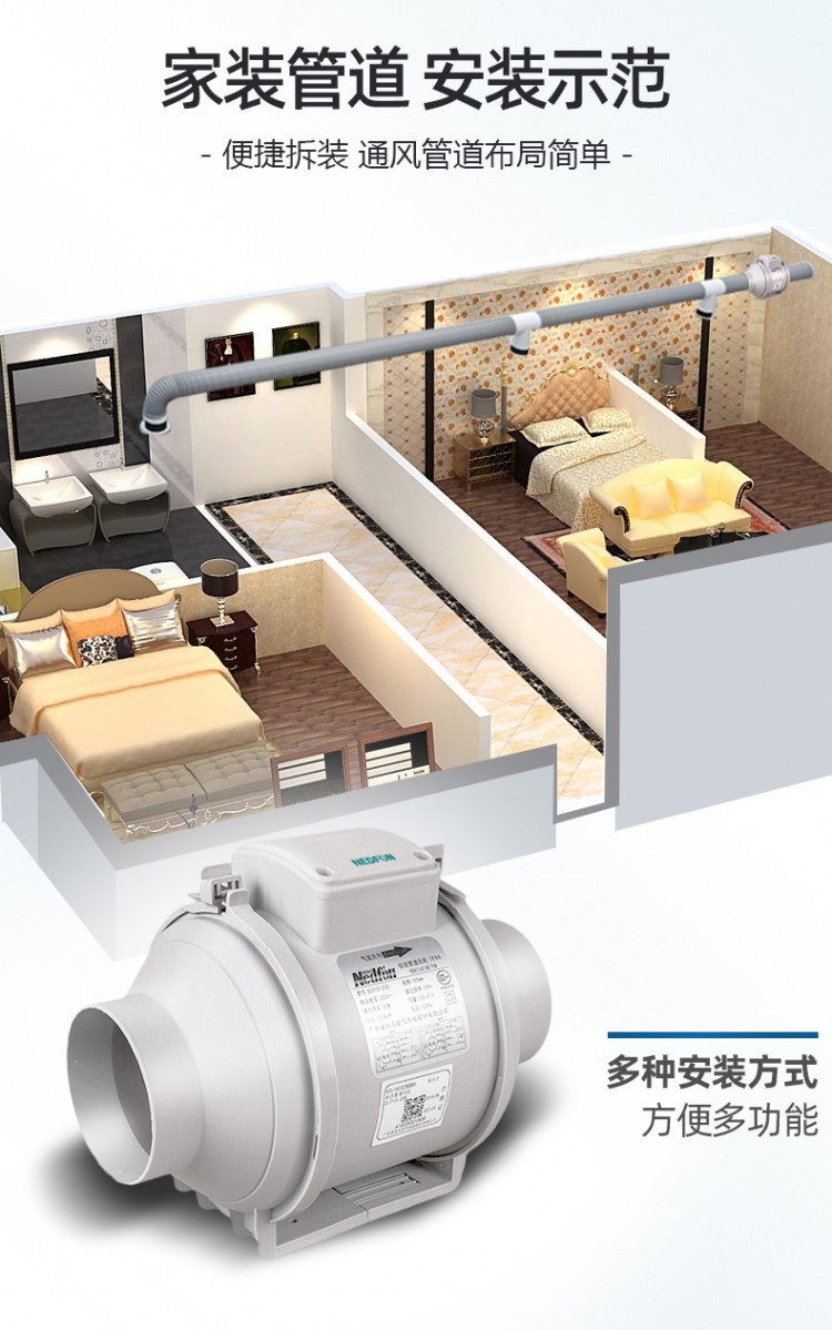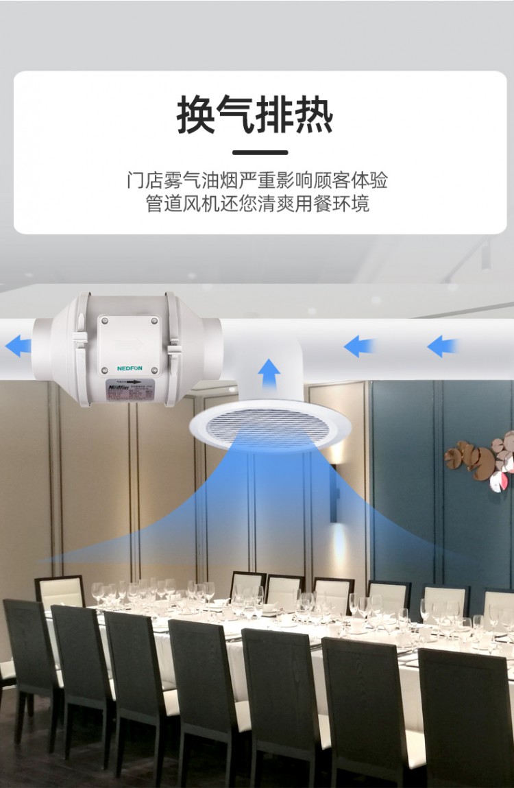 家用衛(wèi)生間排風、餐飲店、醫(yī)院、酒店、辦公室、房間、樓道等