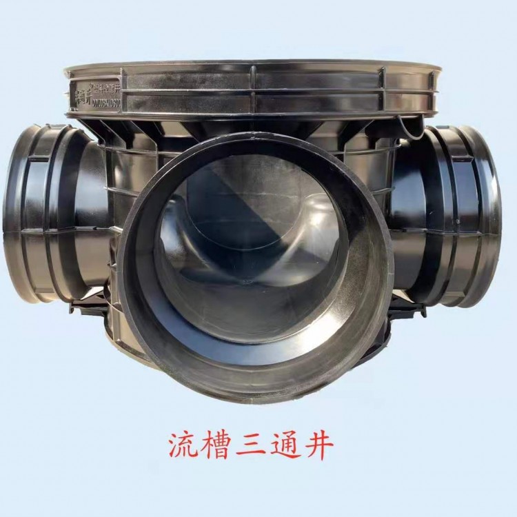 塑料檢查井的井座部分大多采用的是一次性注塑成型,以異徑接頭、變角接頭和橡膠密封圈等配件來達(dá)到改變管徑及角度的連接。塑料檢查井配套開發(fā)了井蓋、井筒和相關(guān)配件,路面載荷通過井蓋、井座作用于檢查井周圍,避免了路面載荷對檢查井的破壞。