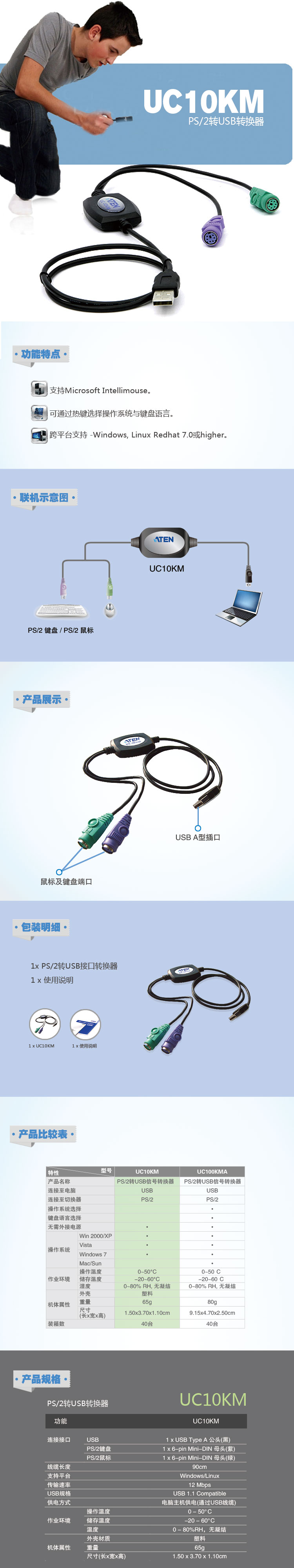 ATEN 宏正 四川成都 UC10KM KVM分銷服務(wù)商 PS/2轉(zhuǎn)USB轉(zhuǎn)換器 圓口轉(zhuǎn)USB鍵鼠(線長(zhǎng)90cm) UC10KM-AT