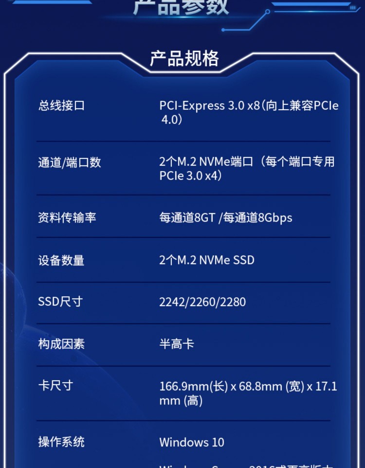 HighPoint火箭SSD7202M.2NVMe陣列卡PCIe3.0x8支持RAID0/1啟動