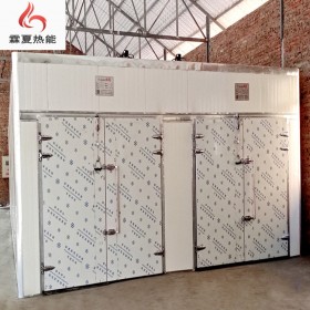 工作原理:模仿冬季自然風干的原理,通過壓縮機工作,將烘干房內(nèi)溫度控制到5--40℃之間,通過強制通風作用于物料表面,對物料進行低溫吹拂,帶走物料水份,經(jīng)冷凝裝置冷凝成水排出室外,達到風干的目的;
