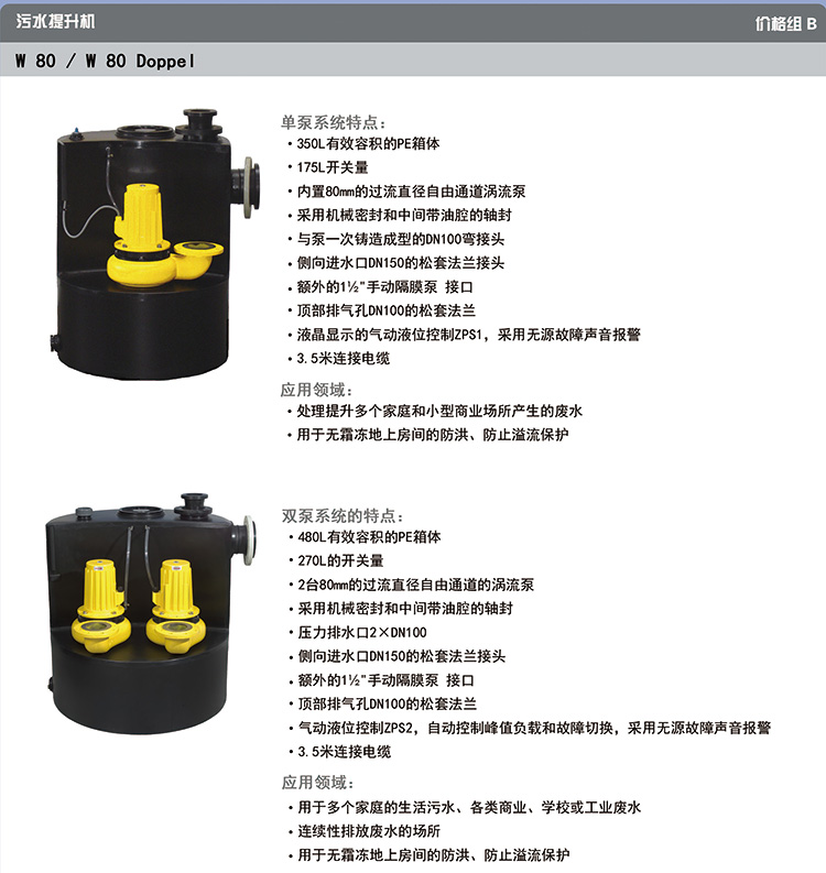 zehnder澤德W80 (350L單系統(tǒng))污水提升裝置:用于多個(gè)家庭和小型商業(yè)場所產(chǎn)生的廢水;無霜凍地上房間的防洪、防止溢流保護(hù)。
