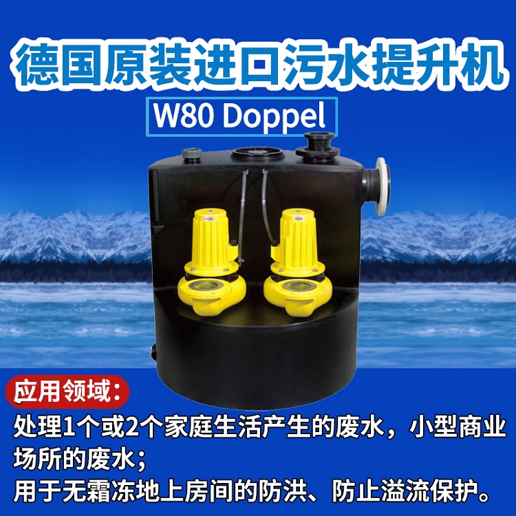 W80 Doppel(480L雙系統(tǒng))污水提升裝置,多用于家庭的生活污水、各種商業(yè)、地鐵、學?;蛘吖I(yè)的廢水,連續(xù)性排放廢水的場所。