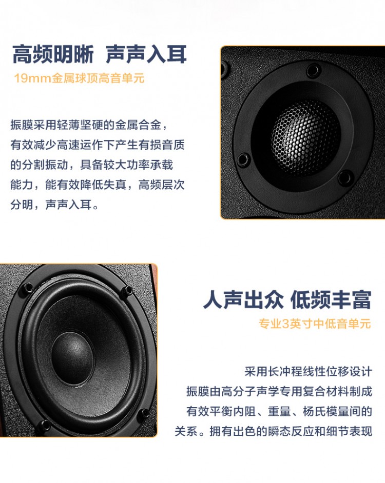單元配置: 3英寸中低頻揚聲器、20mm硬球頂高音