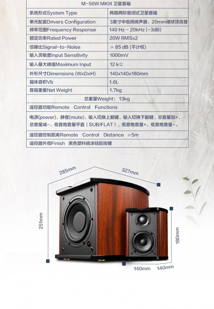 音箱重量: 1.7kg