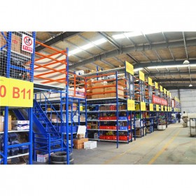 是一種充分利用倉庫上層空間的簡易貨架。在已有的貨架或工作場地上建造一個中間閣樓以增加儲存的面積。閣樓樓板上一般可放輕泡及中小件貨物或儲存期長的貨物,可用叉車、輸送帶、提升機(jī)、電動葫蘆或升降平臺提升貨物。閣樓上一般采用輕型小車或托盤牽引小車作業(yè)。