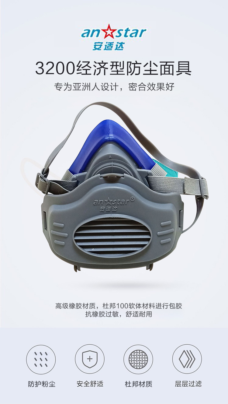 anstar/安適達(dá)3200防霧霾面具KN95防工業(yè)粉塵PM2.5硅膠防護(hù)面具