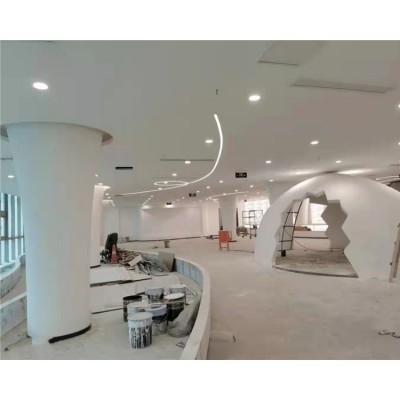 選形豐富任意―采用預(yù)鑄式加工工藝的GRG產(chǎn)品可以定制單曲面、雙曲面、三維覆面各種幾何形狀、鏤空花紋、浮雕圖案等任意藝術(shù)造型,充分發(fā)揮設(shè)計(jì)。 強(qiáng)度高、質(zhì)量輕―GRG產(chǎn)品的彎曲強(qiáng)度達(dá)到Mpa20-25(AS790-2002測(cè)試方式)。拉伸強(qiáng)度達(dá)到Mpa8-15(AS256-2002測(cè)試方式,且6-8mm厚的標(biāo)準(zhǔn)板重量?jī)H為6-9kg/m2,能滿足大板塊吊頂分割需求的同時(shí),減輕主體重量及構(gòu)件負(fù)荷。 不變形、不開裂―出于主材石膏熱膨脹系數(shù)低、干濕收縮率小于0.01%,使GRG產(chǎn)品不受環(huán)境冷、熱、干、濕變形影響,性能穩(wěn)定不變形。獨(dú)特布纖加工工藝使產(chǎn)品不龜裂使用壽命長(zhǎng)。 聲學(xué)反射性能―GRG具有良好的聲波反射性能,經(jīng)同濟(jì)聲學(xué)研究所測(cè)試:30mm單片重量48kg的GRG板,聲學(xué)反射系數(shù)R≥0.97,符合聲學(xué)反射要求,適用于大劇院、音樂廳等聲學(xué)原聲廳。 它主要以壁薄、質(zhì)輕、強(qiáng)度高及不燃性(A級(jí)防火材料),并可對(duì)室內(nèi)環(huán)境的濕度進(jìn)行調(diào)節(jié),以其能達(dá)到舒適的生活環(huán)境。其高強(qiáng)度、高硬度和很好的柔韌性,能滿足 終被制成任意造型。