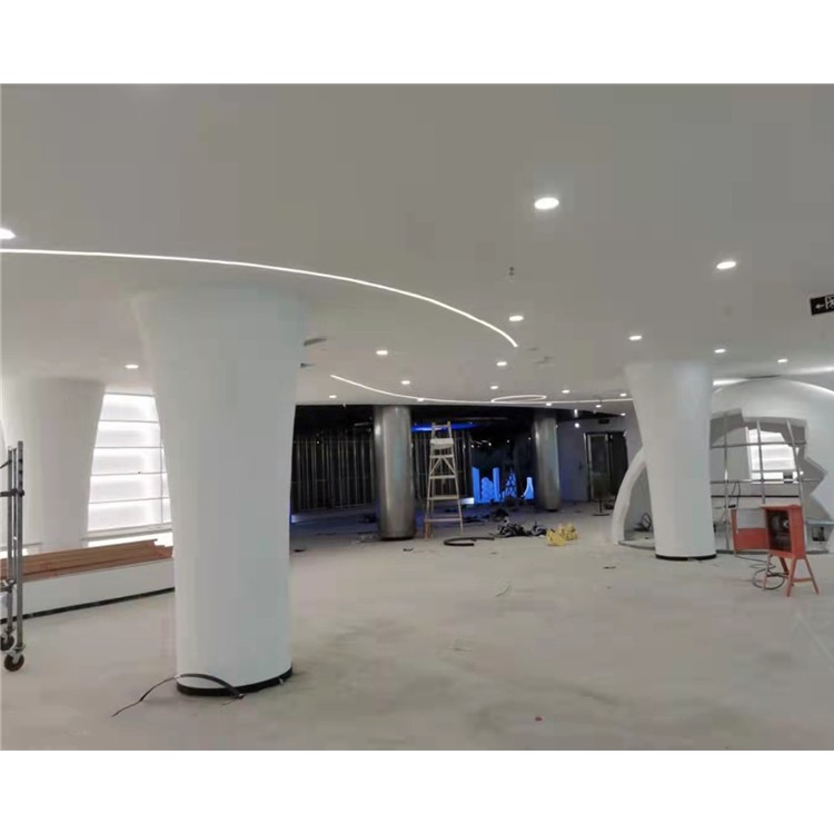 選形豐富任意―采用預(yù)鑄式加工工藝的GRG產(chǎn)品可以定制單曲面、雙曲面、三維覆面各種幾何形狀、鏤空花紋、浮雕圖案等任意藝術(shù)造型,充分發(fā)揮設(shè)計。 強度高、質(zhì)量輕―GRG產(chǎn)品的彎曲強度達到Mpa20-25(AS790-2002測試方式)。拉伸強度達到Mpa8-15(AS256-2002測試方式,且6-8mm厚的標準板重量僅為6-9kg/m2,能滿足大板塊吊頂分割需求的同時,減輕主體重量及構(gòu)件負荷。 不變形、不開裂―出于主材石膏熱膨脹系數(shù)低、干濕收縮率小于0.01%,使GRG產(chǎn)品不受環(huán)境冷、熱、干、濕變形影響,性能穩(wěn)定不變形。獨特布纖加工工藝使產(chǎn)品不龜裂使用壽命長。 聲學(xué)反射性能―GRG具有良好的聲波反射性能,經(jīng)同濟聲學(xué)研究所測試:30mm單片重量48kg的GRG板,聲學(xué)反射系數(shù)R≥0.97,符合聲學(xué)反射要求,適用于大劇院、音樂廳等聲學(xué)原聲廳。 它主要以壁薄、質(zhì)輕、強度高及不燃性(A級防火材料),并可對室內(nèi)環(huán)境的濕度進行調(diào)節(jié),以其能達到舒適的生活環(huán)境。其高強度、高硬度和很好的柔韌性,能滿足 終被制成任意造型。