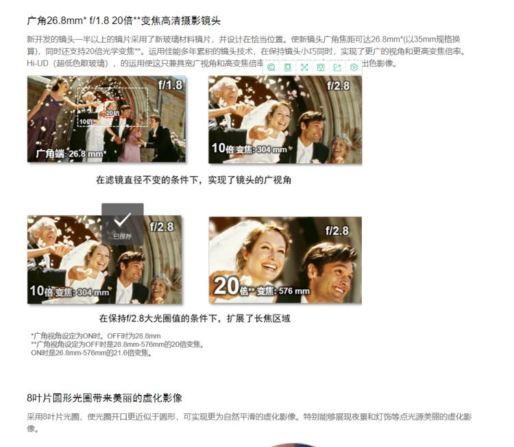 最大光圈 : F1.8(廣角)/2.8(長焦),8葉片圓形光圈