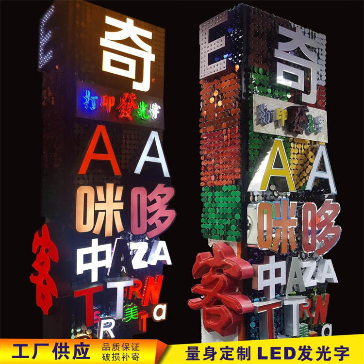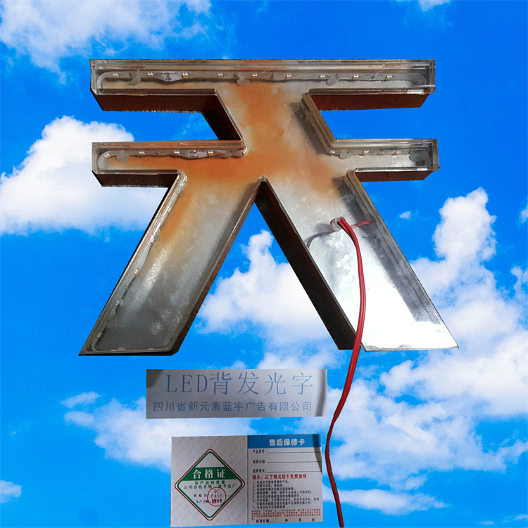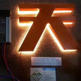 1、不銹鋼背發(fā)光字。利用不銹鋼板做字殼,背裝led光源。