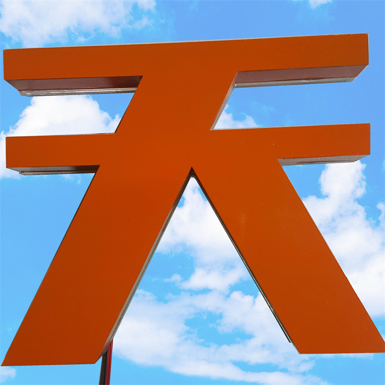 4、金屬背發(fā)光字(背附亞克力圍邊)。利用金屬板材做字殼,背面圍一圈亞克力板聚光,里面裝led光源。
