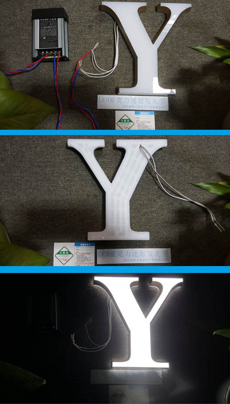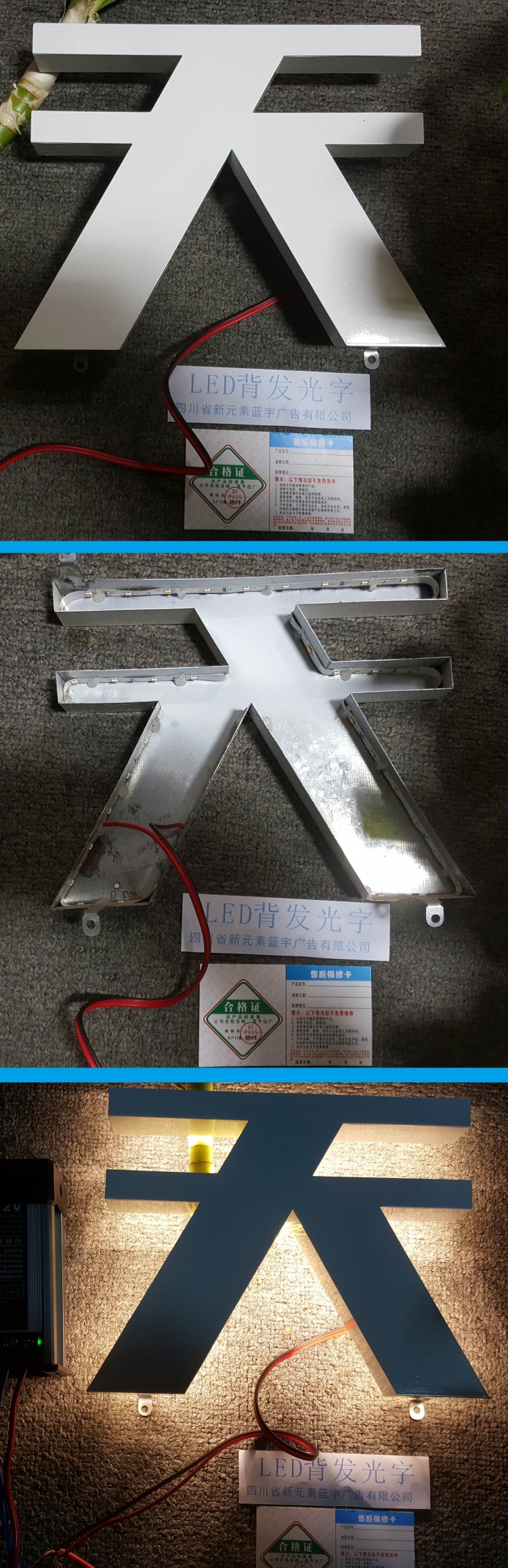 2、鋁板背發(fā)光字。利用鋁板做字殼,背裝led光源。