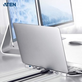 ATEN UH3234 USB-C多端口充電拓展塢體積輕薄,可連接您所需之各種額外設(shè)備,一個(gè)步 驟輕松升級您的筆記本電腦;UH3234使用一條線纜即可外接多達(dá)10臺外圍設(shè)備,同時(shí)帶有電 力傳輸功能,通過外接 HDMI、DisplayPort、VGA、USB 3.1 Gen 1、SD / MMC / MicroSD、 Gigabit 以太網(wǎng)絡(luò)及音頻設(shè)備等來提升生產(chǎn)力。