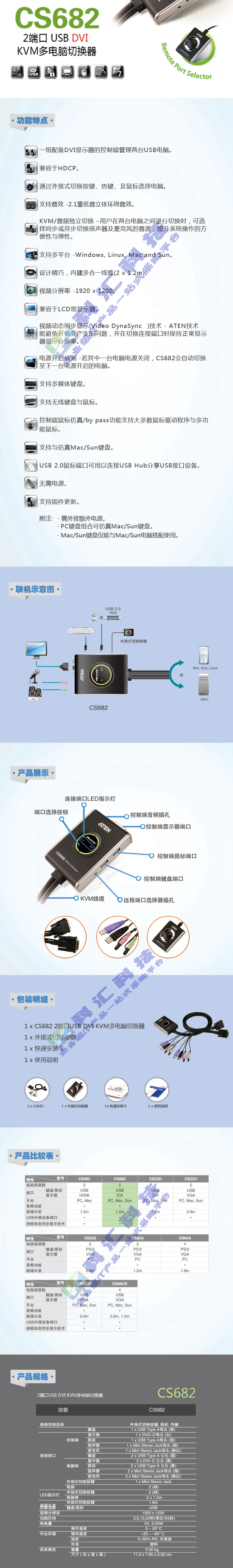 CS682整合了DVI功能、方便的USB 2.0接口設(shè)備分享、以及操作簡易的特性,為使用者提供桌上多媒體應(yīng)用的創(chuàng)新技術(shù)。