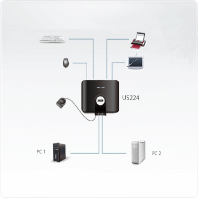 ATEN 宏正 四川KVM 總代理 US224 2口USB 2.0周邊裝置切換器,2臺電腦共享4臺 US224-AT