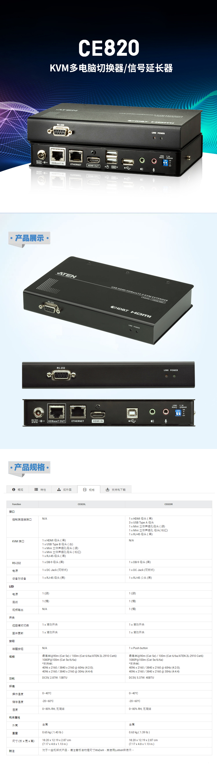 seT™ 2.0 提供可靠的整合式傳輸技術(shù),并為CE820 帶來遠(yuǎn)距離傳輸能力,可傳輸1080P 高畫質(zhì)信號長達(dá)150 m。CE820 的線材安裝簡易并支持各種信號,特別適用于需要便利遠(yuǎn)程訪問的應(yīng)用,例如交通控制中心、醫(yī)療院所、工業(yè)倉庫和延伸工作站等地。