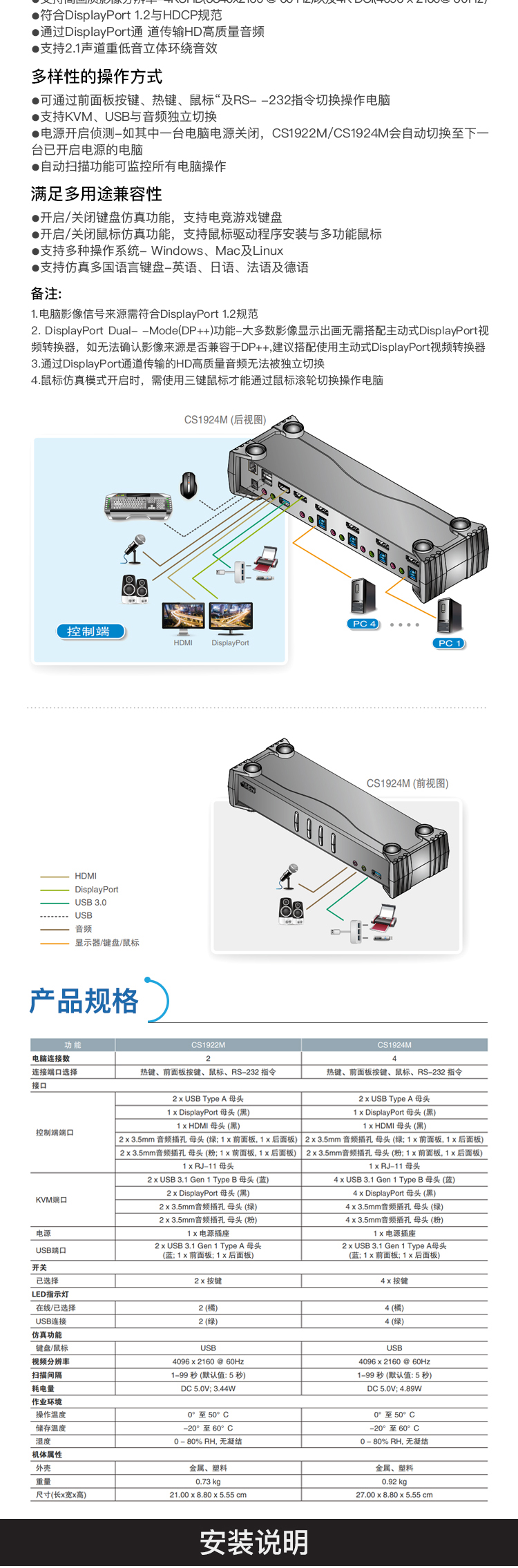 一組USB鍵盤/鼠標及DisplayPort或HDMI屏幕,即可操作控制4臺電腦,并分享使用2個USB外圍設(shè)備