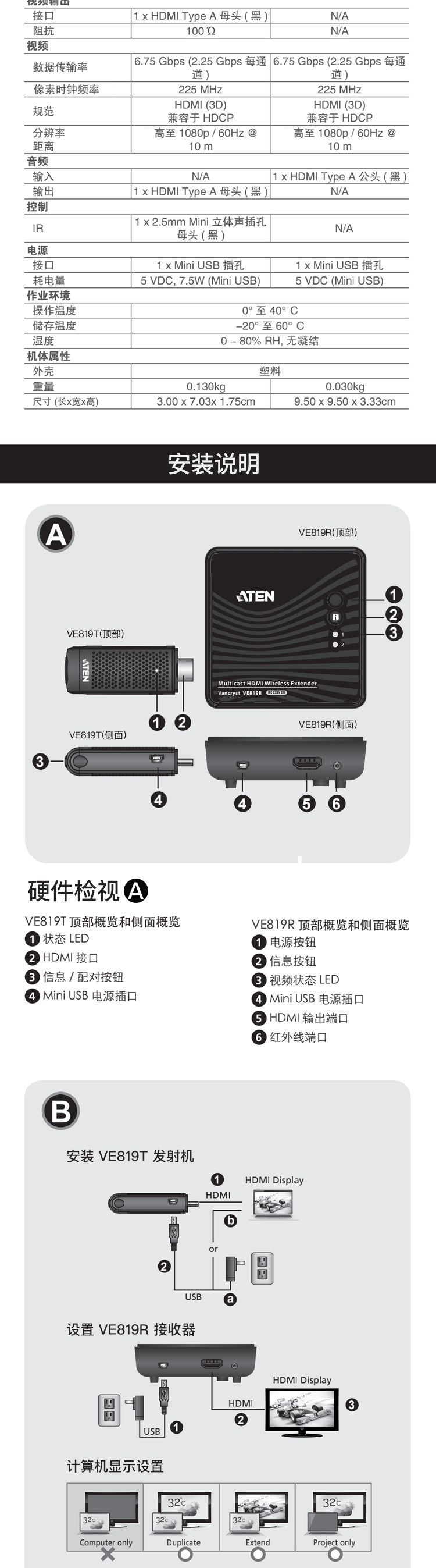 VE819采用即插即用的設(shè)計(jì),完全不需要任何驅(qū)動(dòng)程序或軟件,便可輕松使用。VE819可將電腦無(wú)線延伸或投射至相連的HDMI設(shè)備,呈現(xiàn)視頻及圖片。