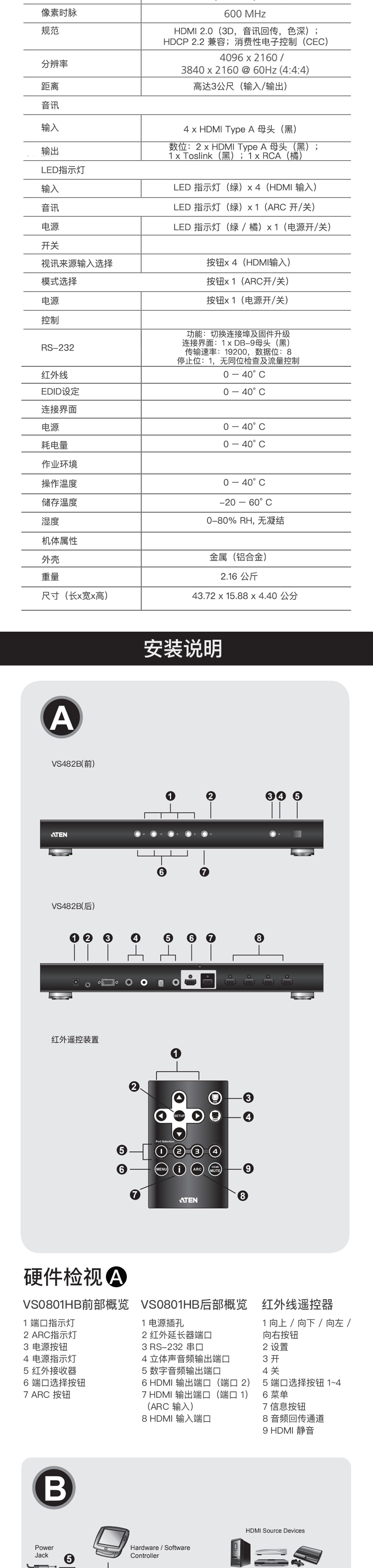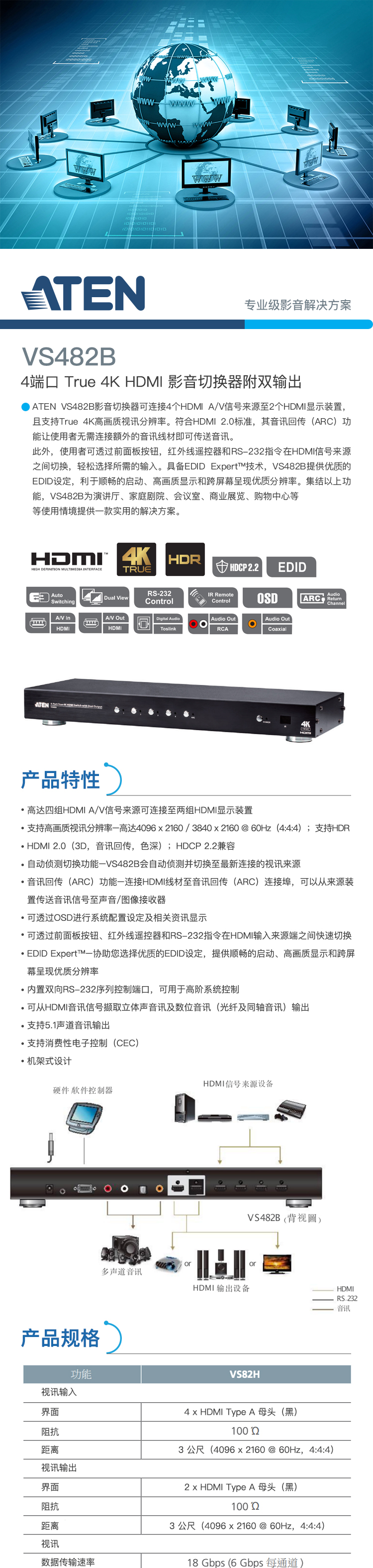 此外,使用者可通過前面板按鈕,紅外線遙控器和RS-232指令在HDMI信號源之間切換,輕松選擇所需的輸入。具備EDID Expert ™技術(shù),VS482B提供EDID設(shè)定,利于順暢的啟動、高清顯示和跨屏幕呈現(xiàn)高清分辨率。具有上述功能,VS482B為禮堂、家庭影院、會議室、商業(yè)展覽、購物中心等使用環(huán)境提供一款實(shí)用的解決方案
