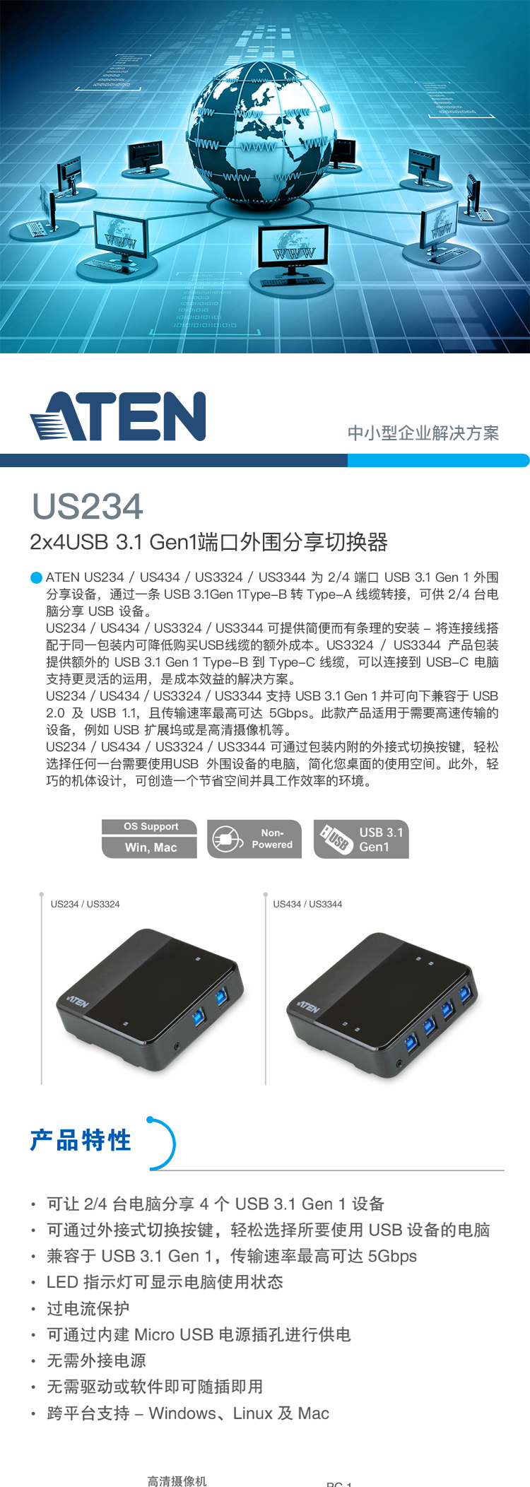US234可通過包裝內(nèi)附的外接式切換按鍵,輕易選擇任何一臺需要使用USB 外圍設備的計算機,簡化您桌面的使用空間。此外,輕巧的機體設計,可創(chuàng)造一個節(jié)省空間并具工作效率的環(huán)境。