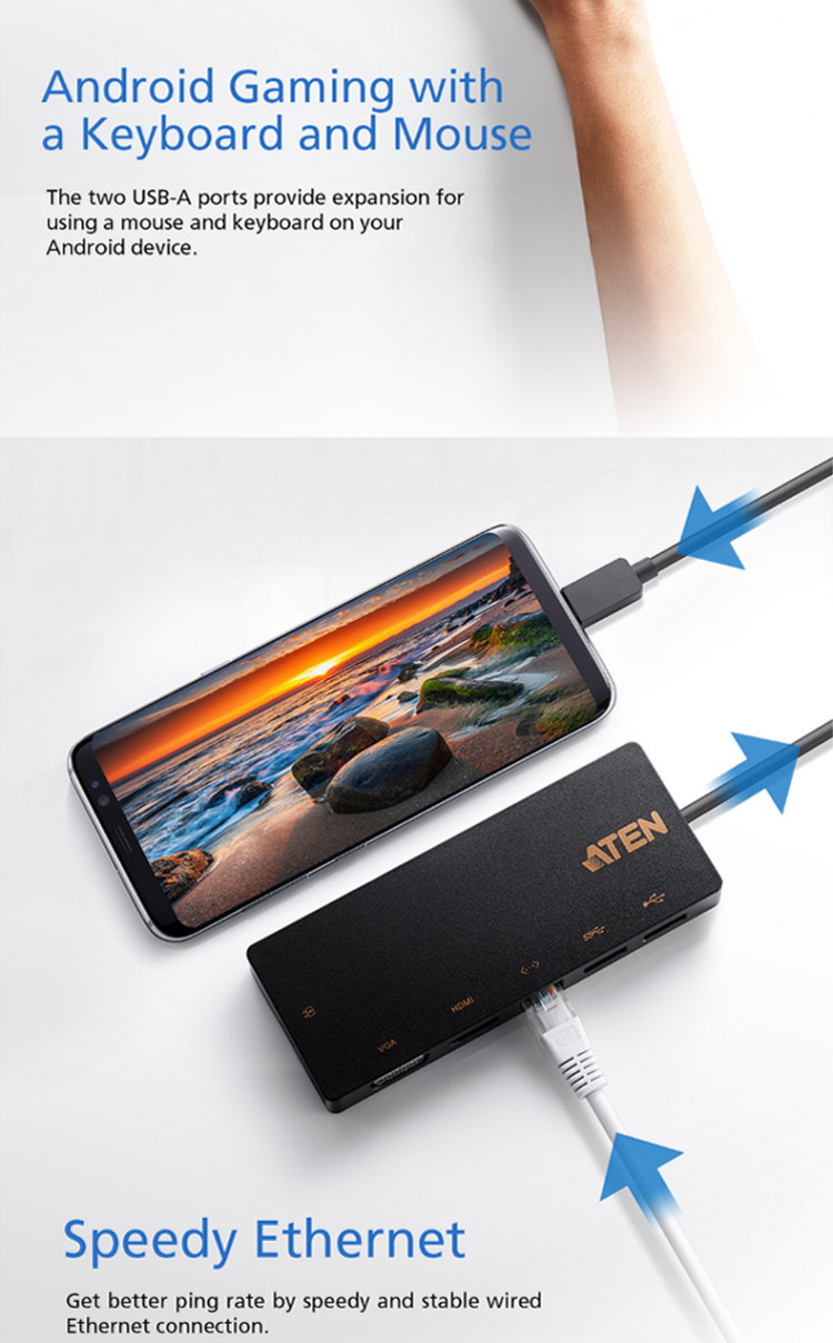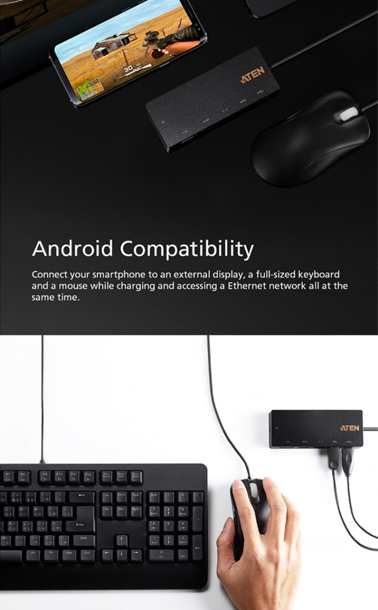 ***支持iPad Pro視頻輸出、USB鍵盤及Android鏡像模式 (此視頻輸出的功能需使用2018年或之后發(fā)行并搭載DP Alt Mode的USB-C智能手機(jī))