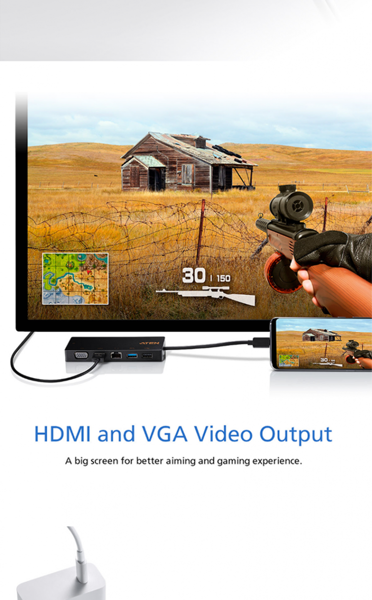 UH3236 通過一個(gè)USB-C 線纜即可連接USB-C 電腦到5 臺外設(shè),其中包括一個(gè)USB 2.0 Type-A 連接端口、USB 3.1 Gen 1 Type-A 連接端口、千兆以太網(wǎng)連接端口,、HDMI 連接端口以及VGA 連接端口。 UH3236 可通過單一線纜將視頻從電腦發(fā)送到4K HDMI(3840 x 2160 @ 30 Hz)屏幕或是VGA(1920 x 1200 @ 60Hz)屏幕。